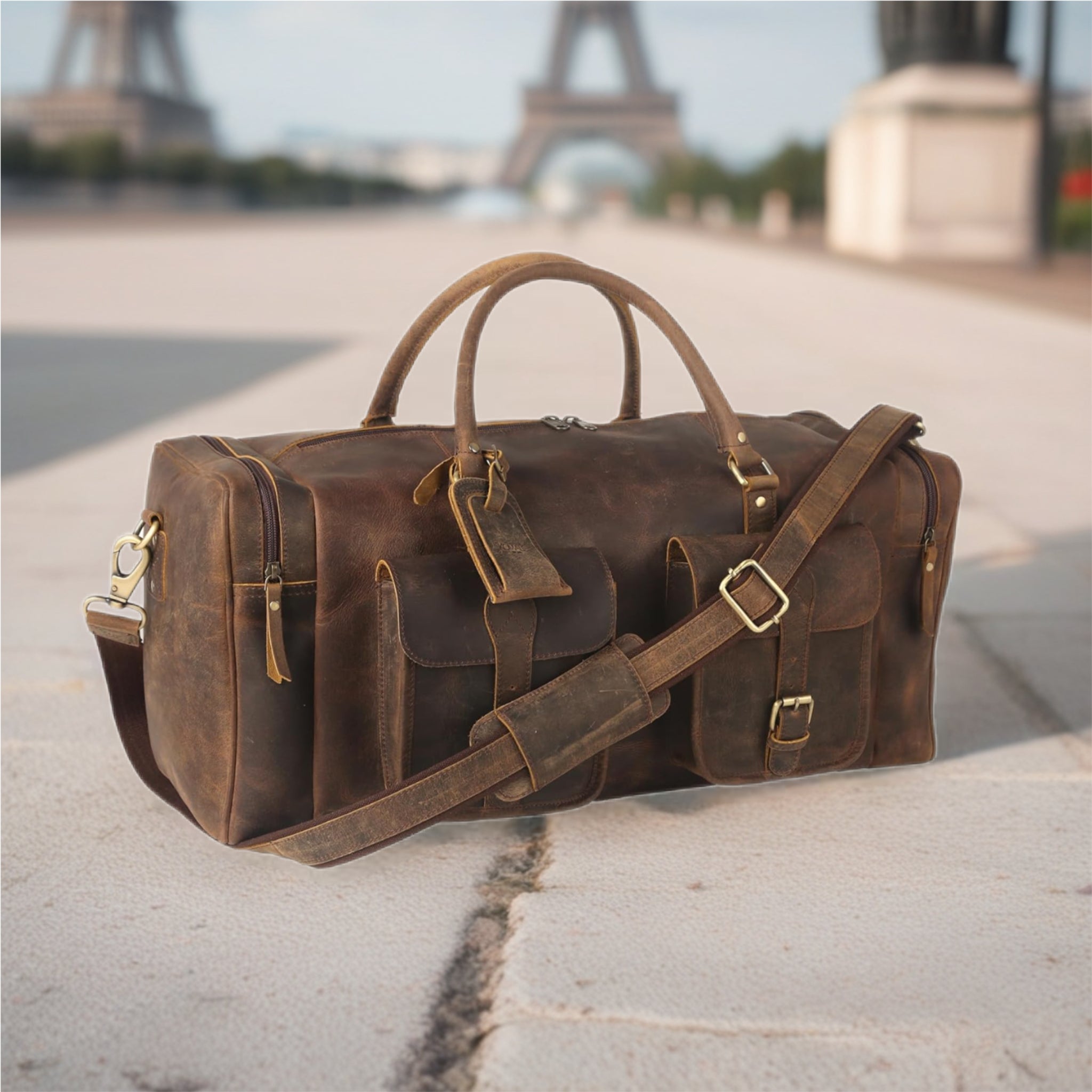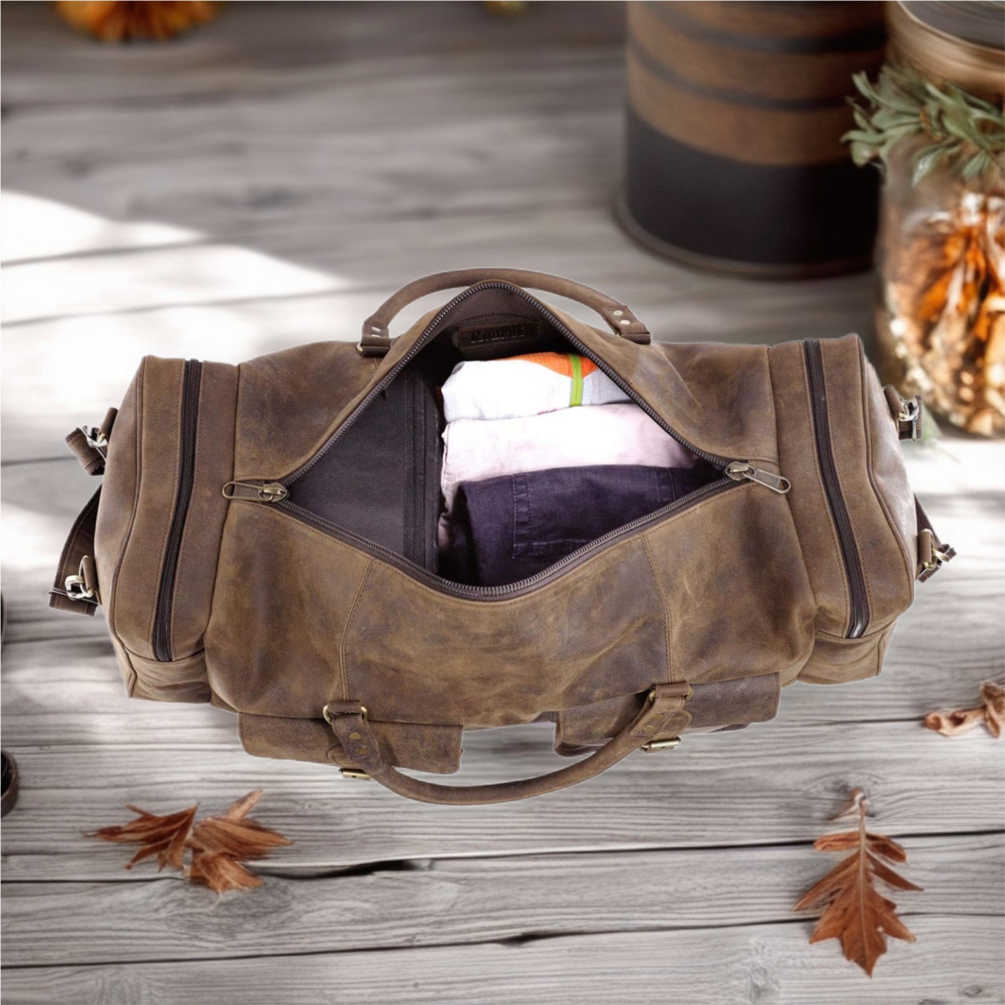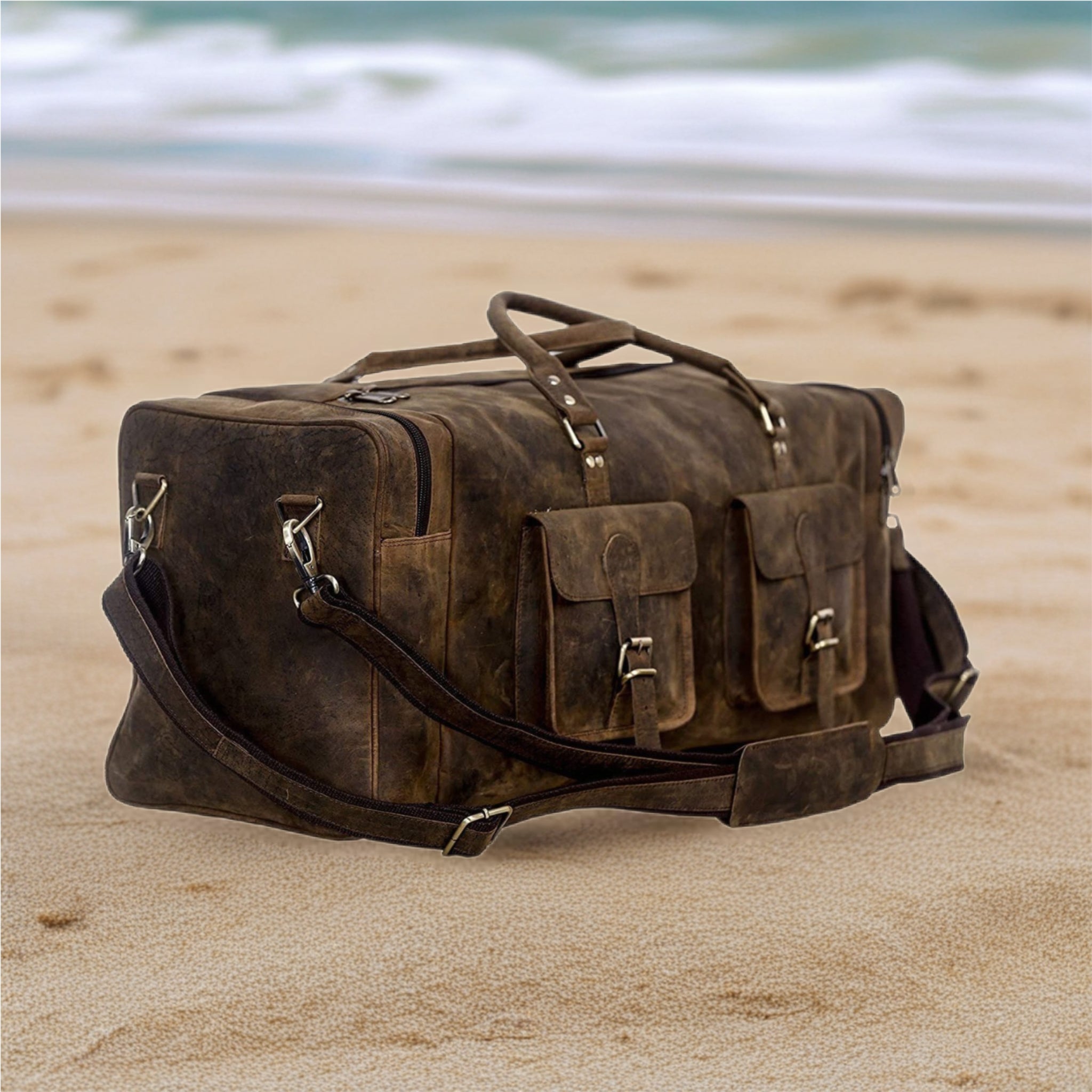 The Large Hunter Buffalo Leather Duffel Bag combines rugged style and durability, perfect for any adventure. With premium buffalo leather and ample storage, it’s your ideal travel companion.