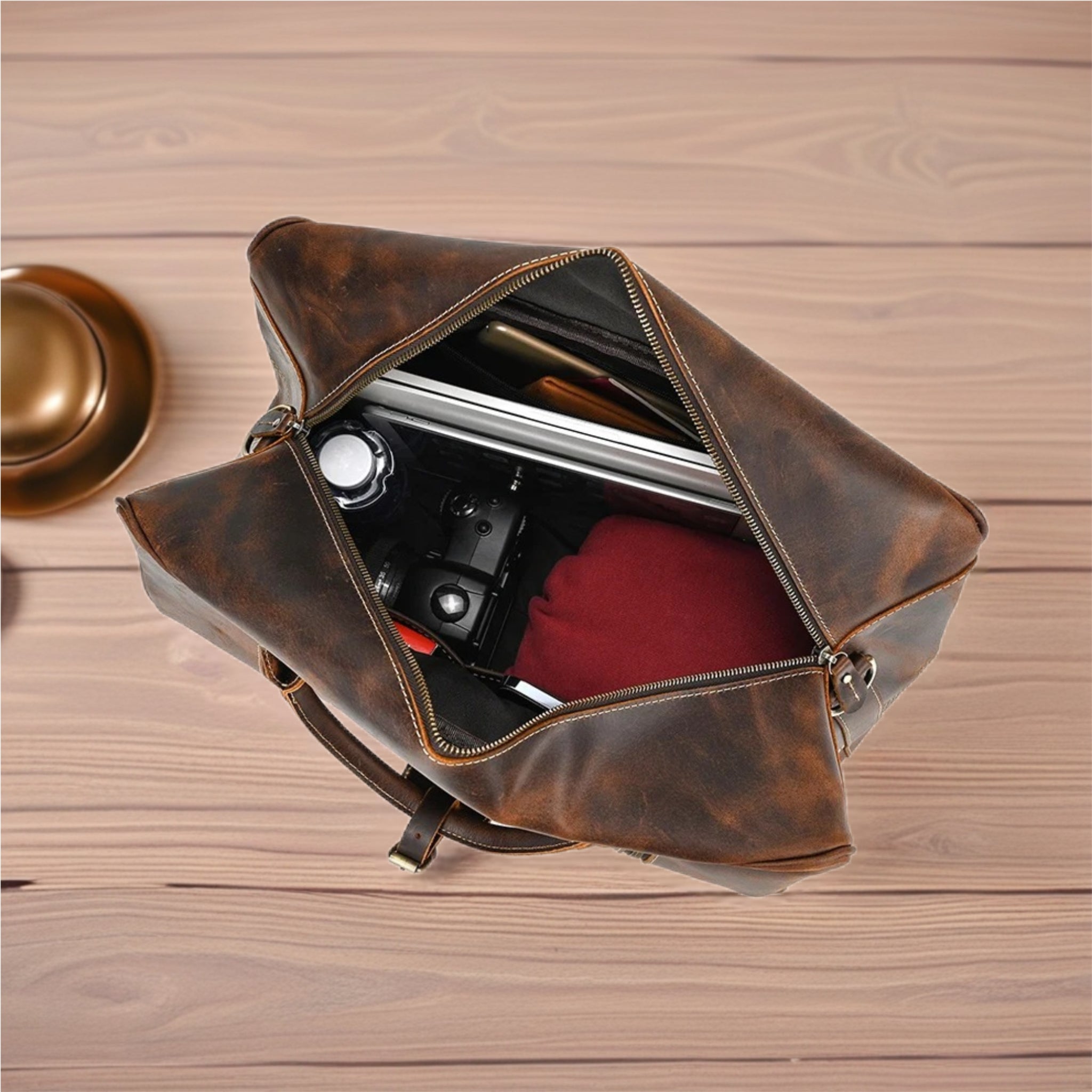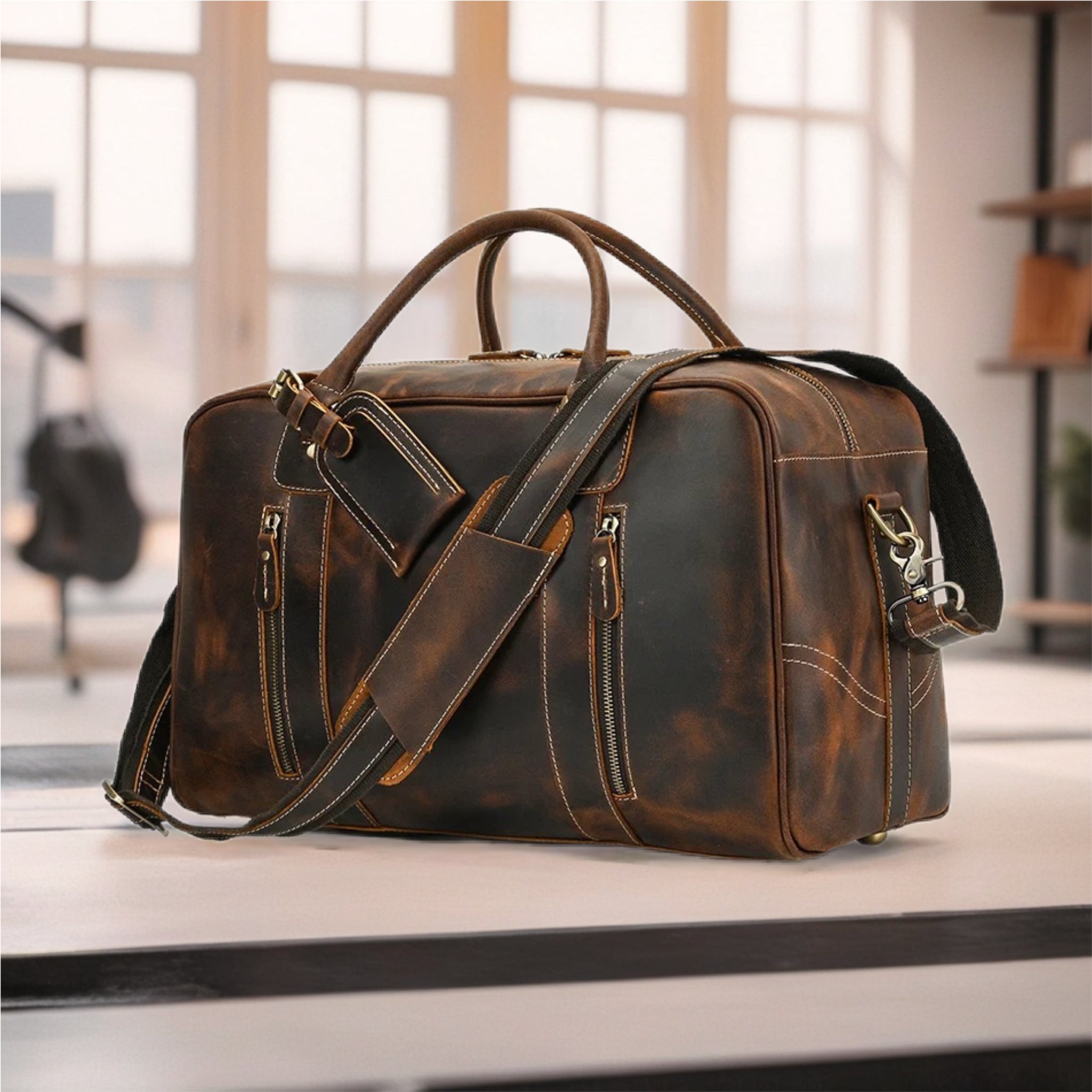 The Jackson Carry-On Weekend Bag is built for those who prefer to move light without ever compromising on impact. Designed for both men and women, its clean silhouette and rich buffalo leather construction make it the perfect fusion of rugged charm and refined utility. Whether you’re heading out for a quick city break, a business overnight, or boarding a plane with nothing but essentials, the Jackson makes an impression with every step—and slides effortlessly into any overhead bin.
