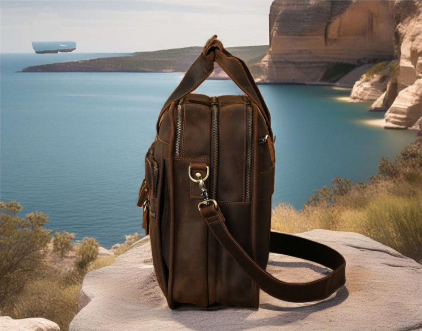 This briefcase is made from 100% full-grain cowhide leather, chosen for its strength, character, and ability to age beautifully over time. The sleek polyester lining inside protects your gear while adding a refined finish. YKK zippers ensure smooth and reliable functionality throughout every compartment. Completing the build is a suite of high-quality hardware—from sturdy clasps and buckles to reinforced D-rings and swivel hooks—all selected for both durability and a premium look. Every detail, down to the metalwork, reinforces this bag’s commitment to long-term performance and timeless style.