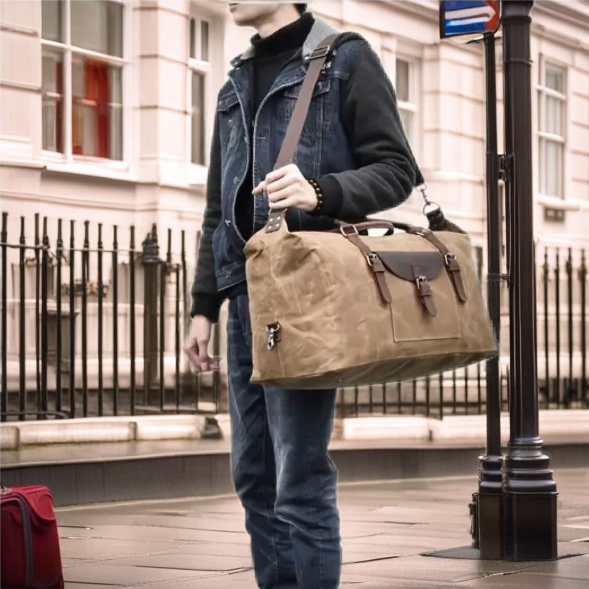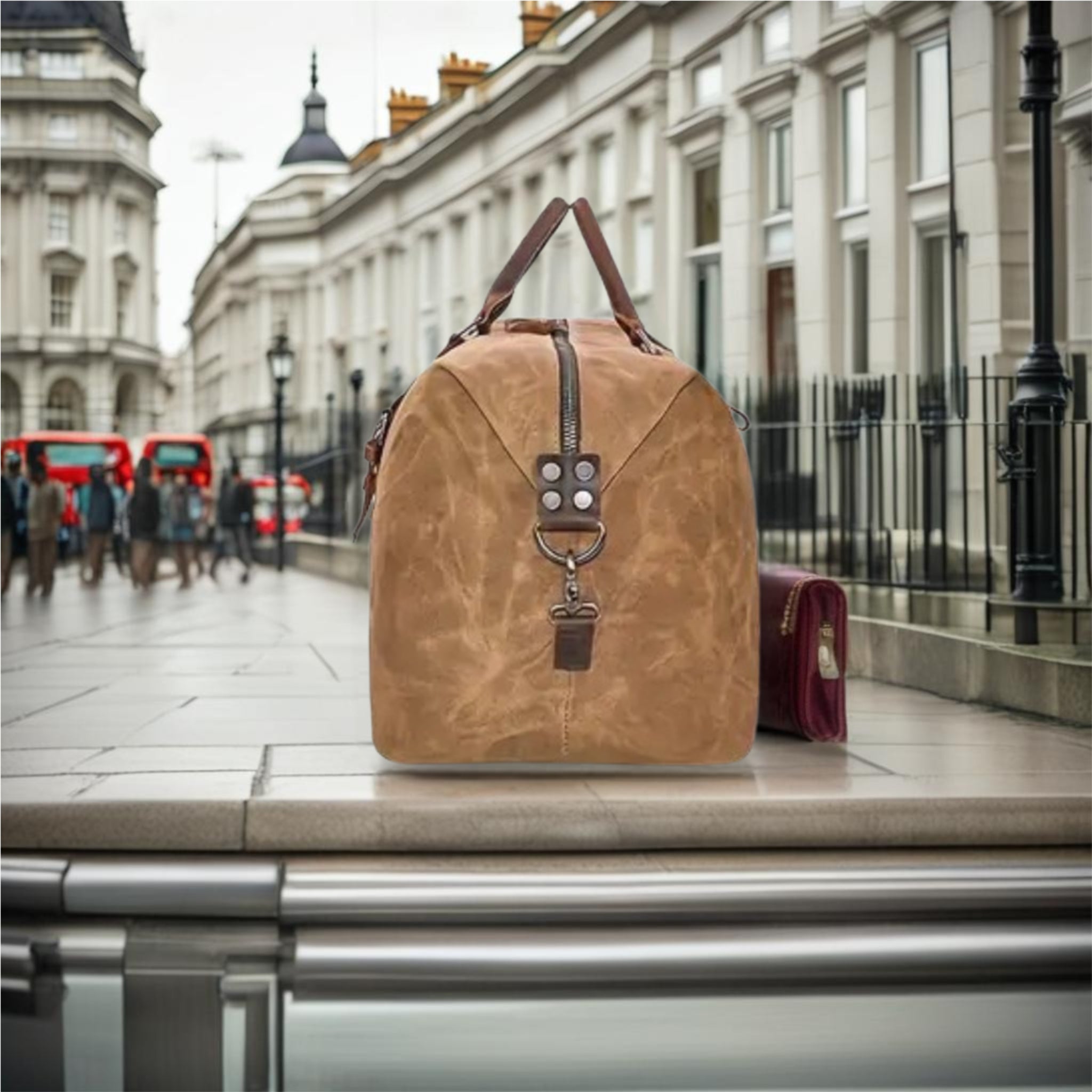 The Voyager’s Haven isn’t just a bag — it’s a passport to a lifestyle. With its rich blend of waxed canvas and full-grain leather, this duffle strikes the perfect balance between rugged and refined. Whether you're dashing through terminals or pulling into a mountain lodge, its classic design and earthy textures make it the kind of bag that turns heads and sparks stories. If you want to travel sharp and carry something that gets better with every mile, this is your match.